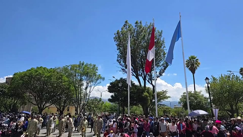 Cajamarca conmemoró sus 100 años de historia a través de un espectacular desfile escolar que destacó la marcialidad, alegría y orgullo de sus instituciones educativas. El evento, realizado en la plaza principal, reunió a colegios emblemáticos como San Ramón, Rafael Loaiza Guevara, Juan 23, Colegio de Ciencias Newton, Nuevo Mundo, y otros, que desfilaban con gallardetes y uniformes representando su tradición y esfuerzo.