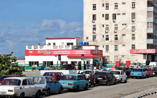 Fotografía que muestra vehículos haciendo fila para abastecerse de combustible este 21 de enero de 2026, en La Habana (Cuba)....