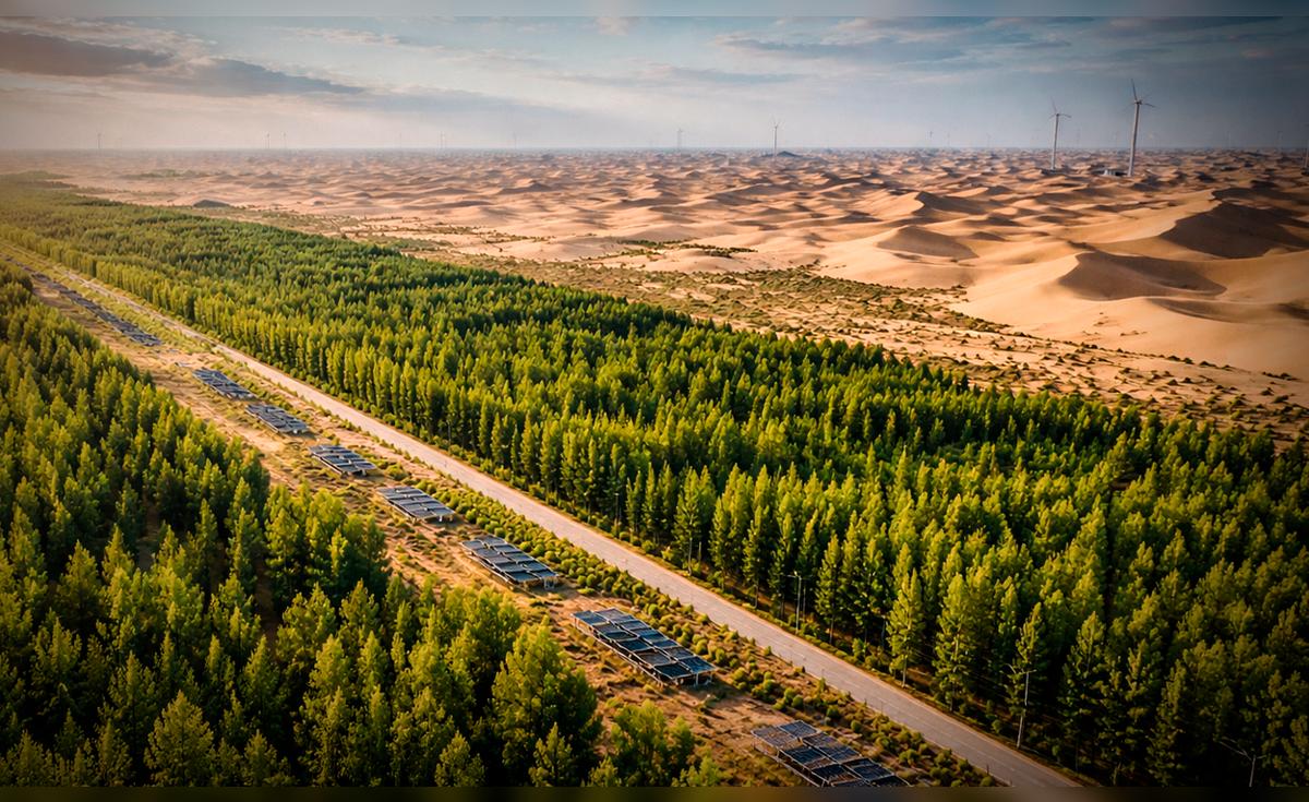 China extrae arena del desierto para crear un bosque y paneles solares: estaría listo en 2050