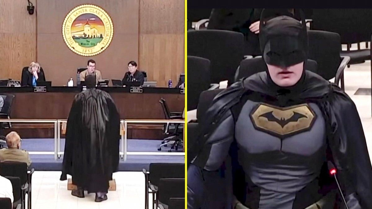 Un hombre se disfrazó de Batman para protestar contra el Servicio de Control de Inmigración y Aduanas (ICE) en una audiencia en California, luego de que dos personas fueran asesinadas por agentes en Minneapolis.