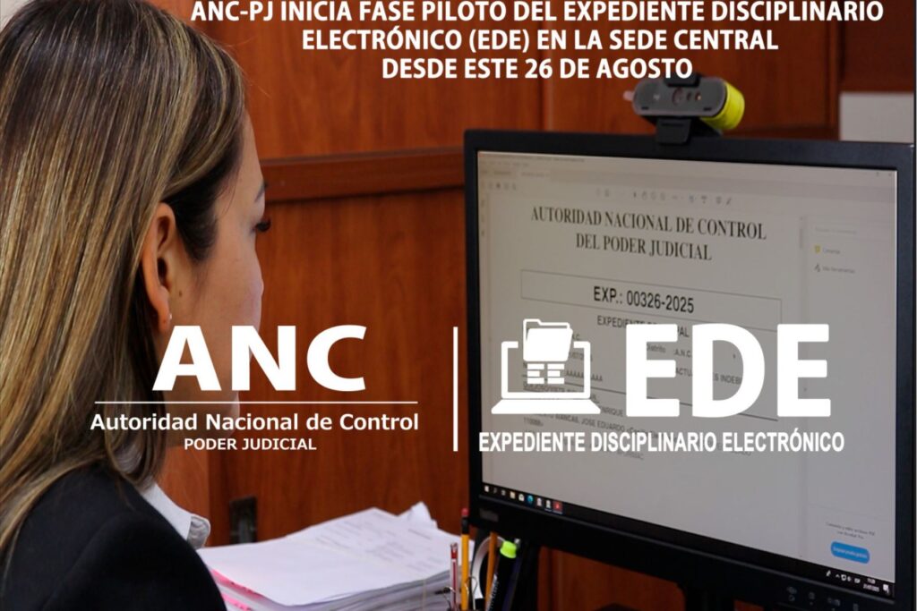 La Autoridad Nacional de Control del Poder Judicial (ANC-PJ), dirigida por el doctor Roberto Alejandro Palacios Bran, comenzará el próximo 26 de agosto una fase piloto del Expediente Disciplinario Electrónico en su sede principal, de acuerdo con la Resolución Jefatural N° 206-2025-JN-ANC-PJ.