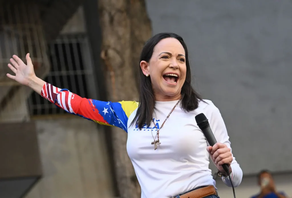 La opositora, que estaba inhabilitada, sostiene que el chavismo le robó las elecciones a su candidato, Edmundo González Urrutia.